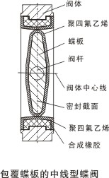 3、包覆蝶板的中線型蝶閥。其密封副結構如下: |
