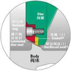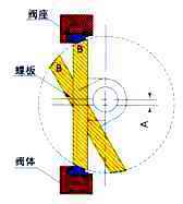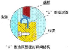 彈性座密封結構,采用偏心蝶板安裝在閥桿上,其邊績為球形、錐形兩種,并與彈性密封圈相配合.密封圈做成L形和U形兩種,與蝶板密封面相吻合。密封副在介質壓力作用下,產生微小的彈性變形,從而實現密封。根據閥門的公稱通經,公稱壓力選擇其結構形式,根據承壓受力設計密封圈壁厚。