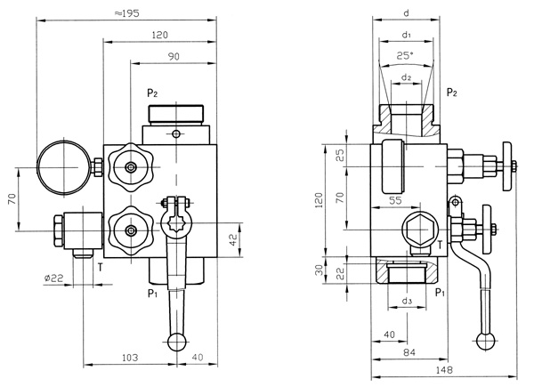 ⑤ 結(jié)構(gòu)形式:A-先導(dǎo)式溢流閥、B-直動式溢流閥